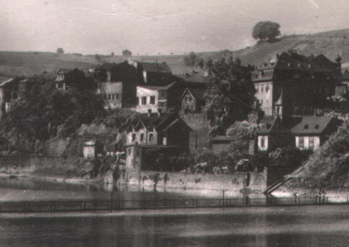 Garten des Hauses in der Schlossstraße (oberhalb des ehem. Wasser- und Schifffahrtsamts bzw. des heutigen BAMF) Blick durch den Garten in nördlicher Richtung in die Friedrichstraße und über den Rhein auf die Weinberge auf der anderen Rheinseite