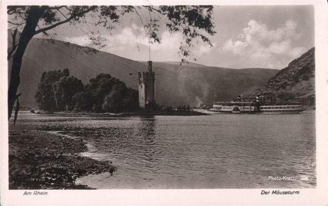 Fotokarte, postalisch gelaufen 1936 Künstlerkarte von H. Hoffmann, vermutlich von ca. 1920/30 Künstlerkarte, vermutlich 30er Jahre Mäuseturm /im Hintergrund Jugendherberge Bingerbrück (50er)