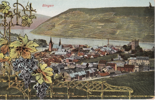 Seit ich Ansichtskarten von Bingen und Umgebung sammele, fällt mir immer wieder auf, wie "tricky" schon unsere Altvorderen waren, wenn sie diverse Sehenswürdigkeiten auf EINEM Bild zeigen wollten, obgleich diese - aus dem Blickwinkel, aus dem dies geschah - gar nicht zusammen zu sehen sein könnten!