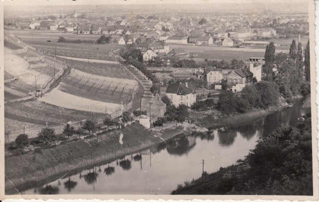 Blick vom sog. Rondelle Richtung Weiler auf Bingen, Karte postalisch gelaufen 1937