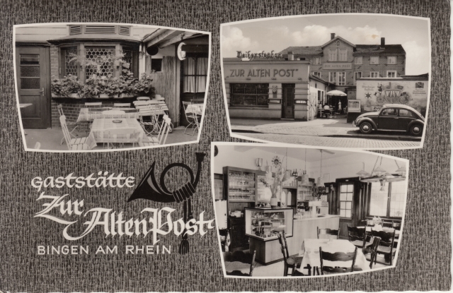 Zu dieser Karte: Die auf der Karte genannte Besitzerin Frau Brilmayer war von 1952 bis einschl. 1959 Inhaberin der Gaststätte, die in dieser Zeit oft von Binger Studenten des Rheinischen Technikums besucht wurde. Eröffnet wurde die Gaststätte laut Unterlagen der Familie am 1. August 1887. U.a. war später ein gewisser Herr Trapp (ehemals Landrat) Mieter der Gaststätte. Ab 1959 war die Firma Stollwerk 40 Jahre lang Mieter mit der "Süßen Susi". Derzeit ist dort ein Modegeschäft mit Damenmode. Herzlichen Dank für Karte und Informationen an Anke K., Bingen.