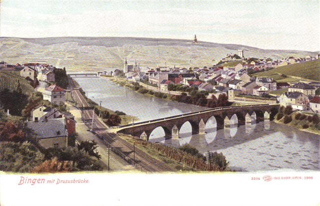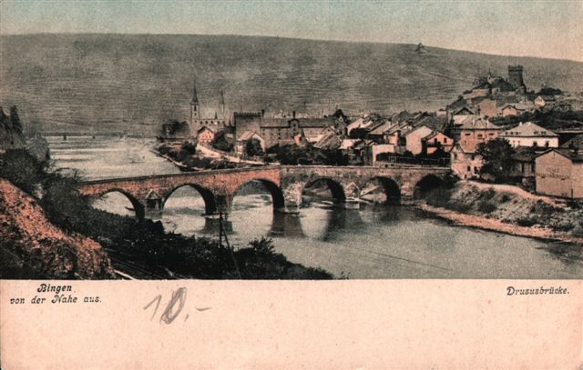 Blick auf die Stadt Bingen und die Drususbrücke - vermutlich ca. 1920