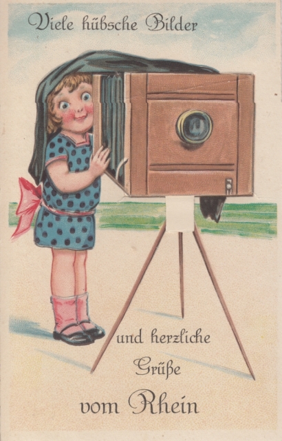 links: Leporello von ca. 1930 Text: Unter’m Hemdchen wohl versteckt trag ich was Freude weckt, heb’s mal hoch, welch ein Genuß, vom RHEIN ist’s ein Ansichtsgruß (Dank für das Entziffern einiger Worte an Sabine Helbig!)