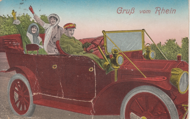 1923 und 1922 postalisch gelaufen / Übersetzung: Hast Du jemals den Rhein gesehen? Mach Dir keine Gedanken; lüfte rasch mein Hemdchen, dann wirst Du ihn hier sehen!”
