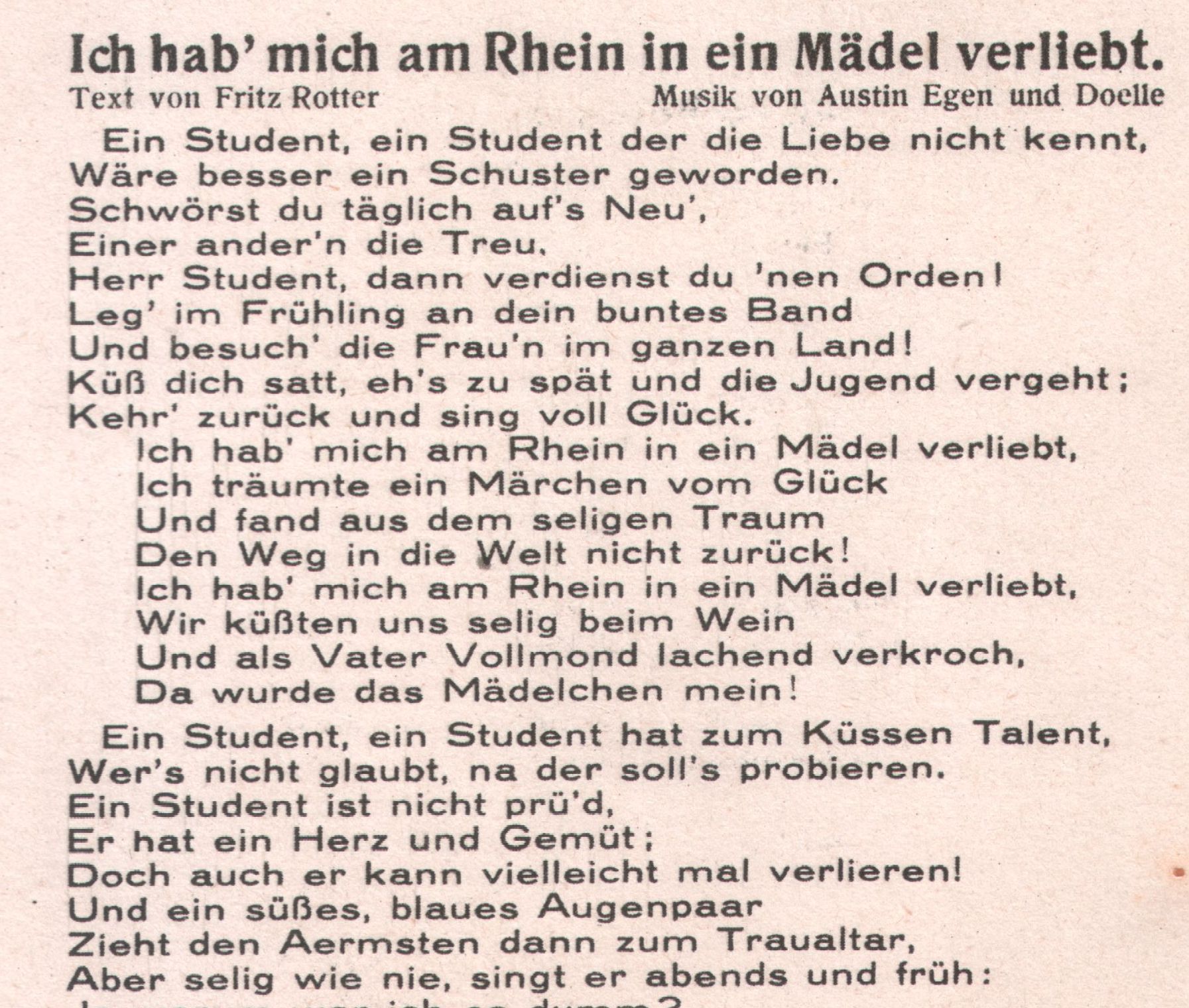 Studenten genießen das Leben am Rhein 1901 (obgleich der Text davor warnt) vermutl. 30 er Jahre